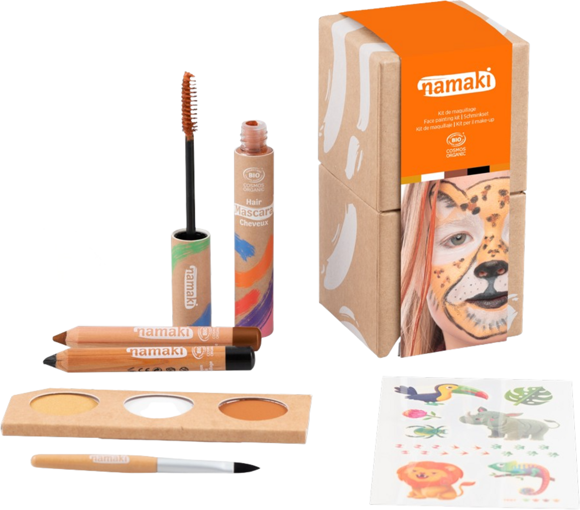 Deze uitgebreide schminkset dompelt je kleintjes onder in de wereld van wilde dieren! Drie kleuren zijn inbegrepen, inclusief kwasten, stiften voor details en verf voor het haar. Alles is gecertificeerd veilig voor gebruik.