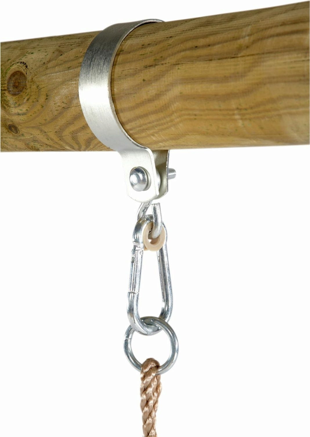 - Verzinkte, balkenomsluitende metalen klemmen voor de schommels