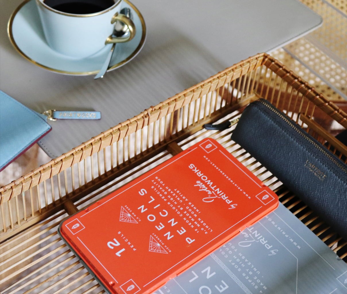 De potlodenset wordt geleverd in een hoogwaardige opbergdoos, die met oog voor detail is ontworpen door het Zweedse label Printworks.