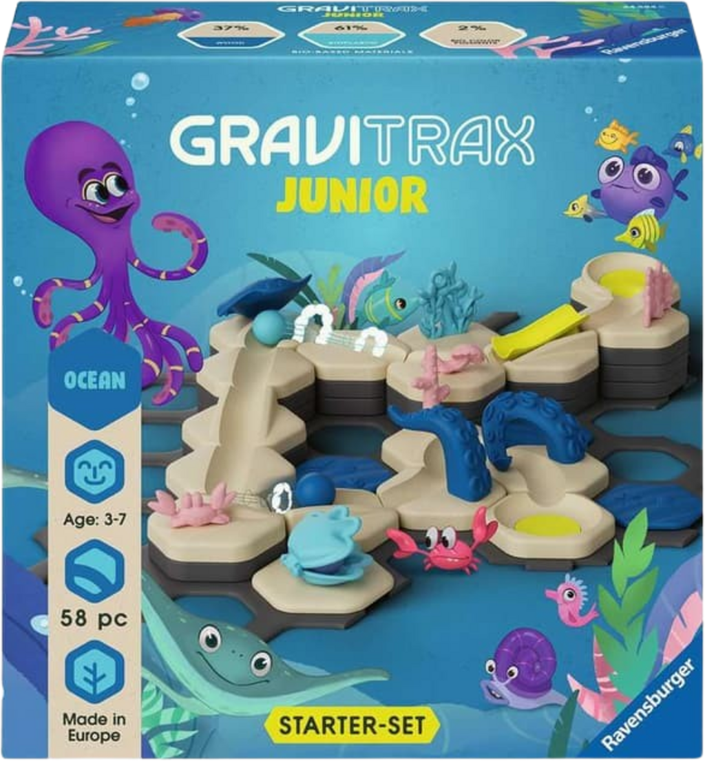 Wil je je samen met je kinderen onderdompelen in een fascinerende onderwaterwereld? De GraviTrax Junior Starter-Set S Ocean biedt de perfecte, kindvriendelijke introductie tot het interactieve knikkerbaansysteem. Deze set is speciaal ontwikkeld voor kleine handjes vanaf 3 jaar en combineert het eerste bouwplezier met een liefdevol ontworpen wereld met oceaanthema.