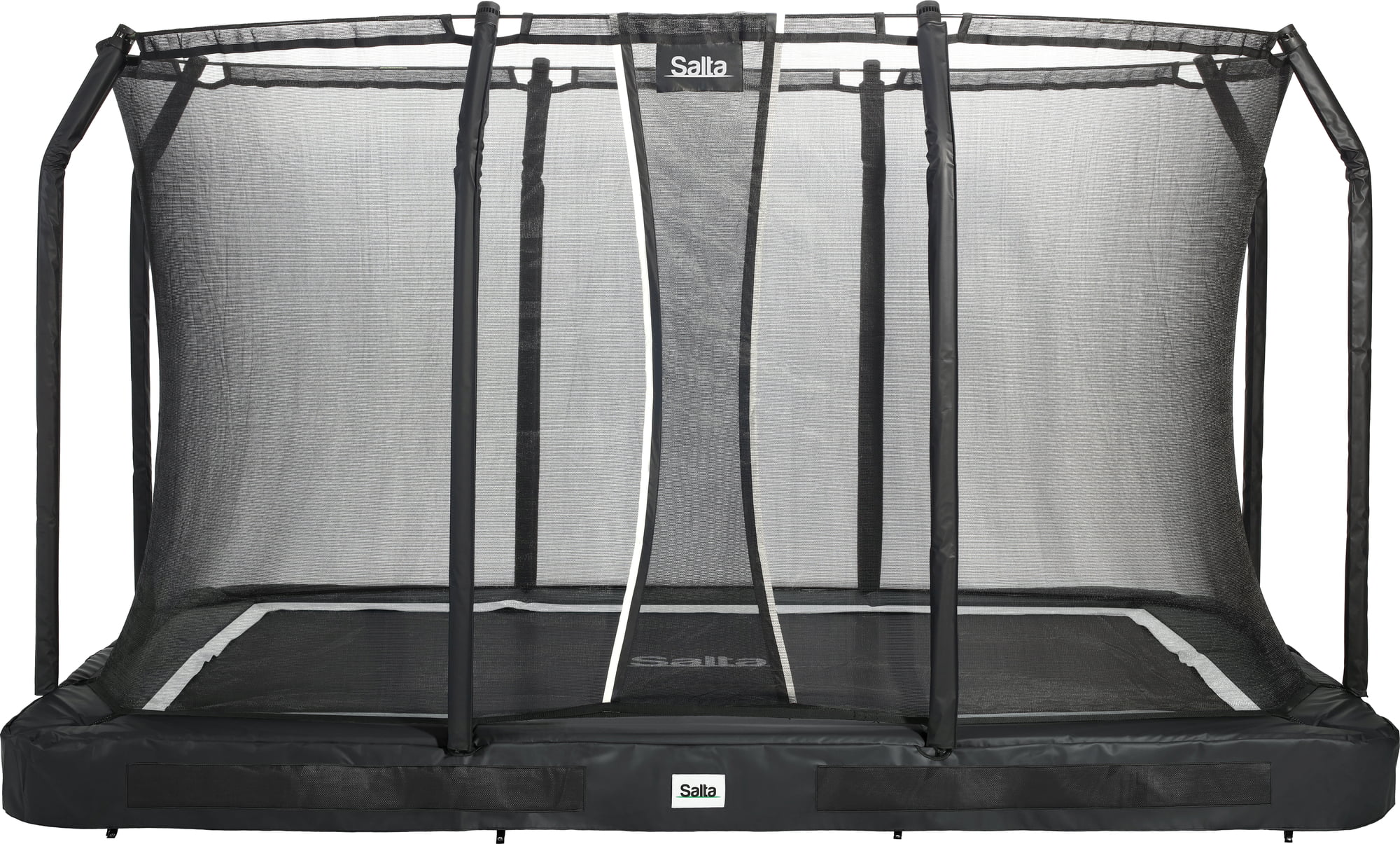 Voor uitbundig sportplezier in eigen tuin heeft SALTA de Premium Ground Trampoline ontwikkeld. Het apparaat wordt in de grond verzonken en met grondankers bevestigd. Dit zorgt voor een aangenaam lage instaphoogte en meer stabiliteit. Het strak gespannen net, het gevoerde frame en de beschermrand van PVC zorgen voor extra veiligheid. Met een maximaal gebruikersgewicht van 120 kg kunnen ook volwassenen zich verheugen op het springen.