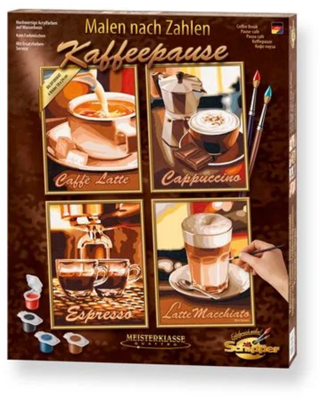 Ontdek de kunstenaar in jezelf met de 'Koffiepauze' van SCHIPPER. Met de acrylverf en het fijne penseel zijn precieze en exacte streken mogelijk, zonder dat de verf uitloopt.