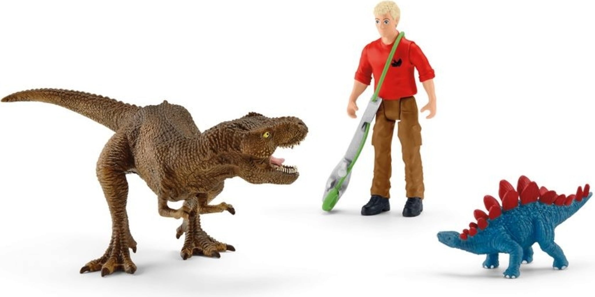 Nu moet Flynn snel handelen! Zijn kleine stegosaurus Steggy wordt aangevallen door een gevaarlijke T-Rex. Gelukkig is hij uitgerust met een wapenstok, met de lus waarvan hij zeker weet dat hij de gemene aanvaller onmiddellijk te pakken krijgt. Spannende avonturen zijn voorgeprogrammeerd met deze unieke speelset!