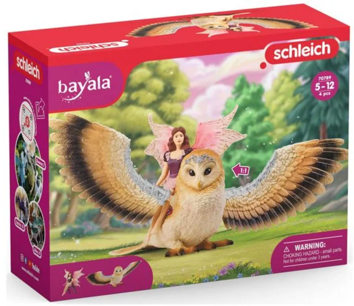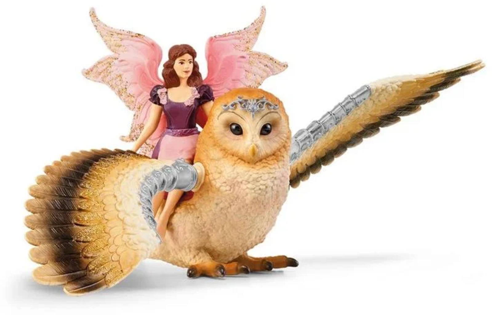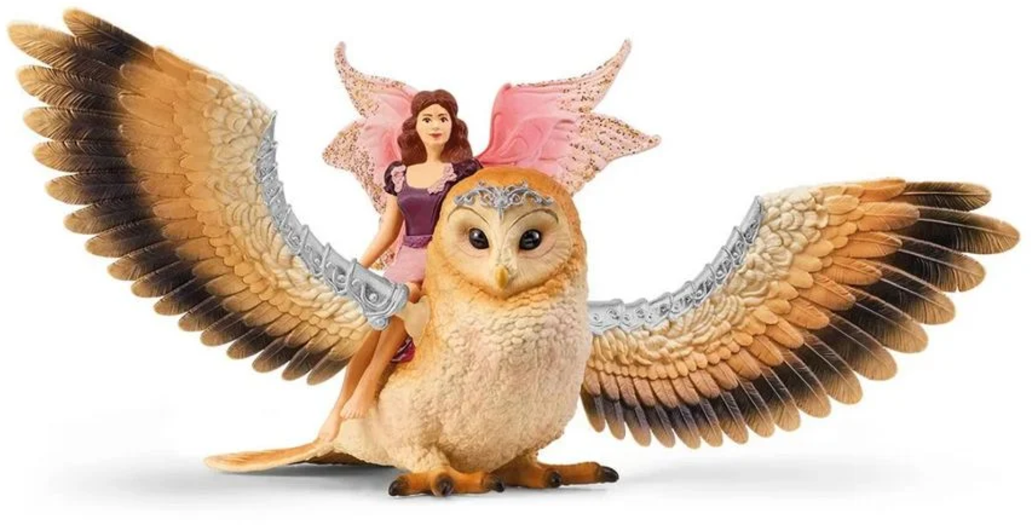 Op naar duizelingwekkende hoogten - dat is het motto van deze magische elf en haar trouwe metgezel. Samen beleven ze elke dag nieuwe avonturen in de magische wereld van bayala. Een magneet zorgt ervoor dat de elf op de uil blijft zitten, zelfs tijdens de meest uitbundige vliegmanoeuvres.