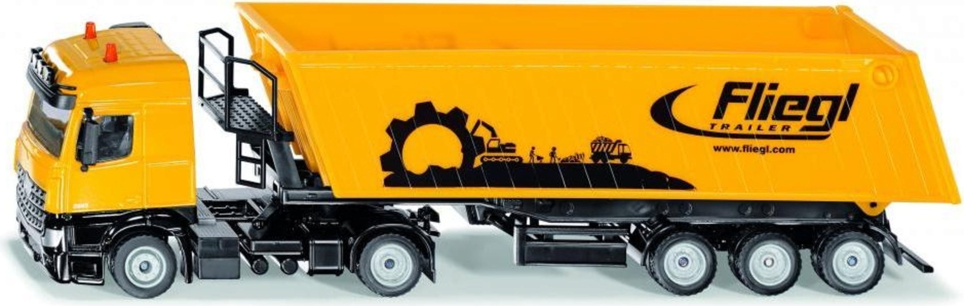 Deze twee-assige trekker met Mercedes Actros-cabine ziet er niet alleen goed uit, maar beschikt ook over een enorme kracht. En die power is hard nodig om de Fliegl 3-assige oplegger met bak-kipper moeiteloos over de wegen van het land te trekken. Een bijzonder hoogtepunt voor alle fans van indrukwekkende vrachtwagens!