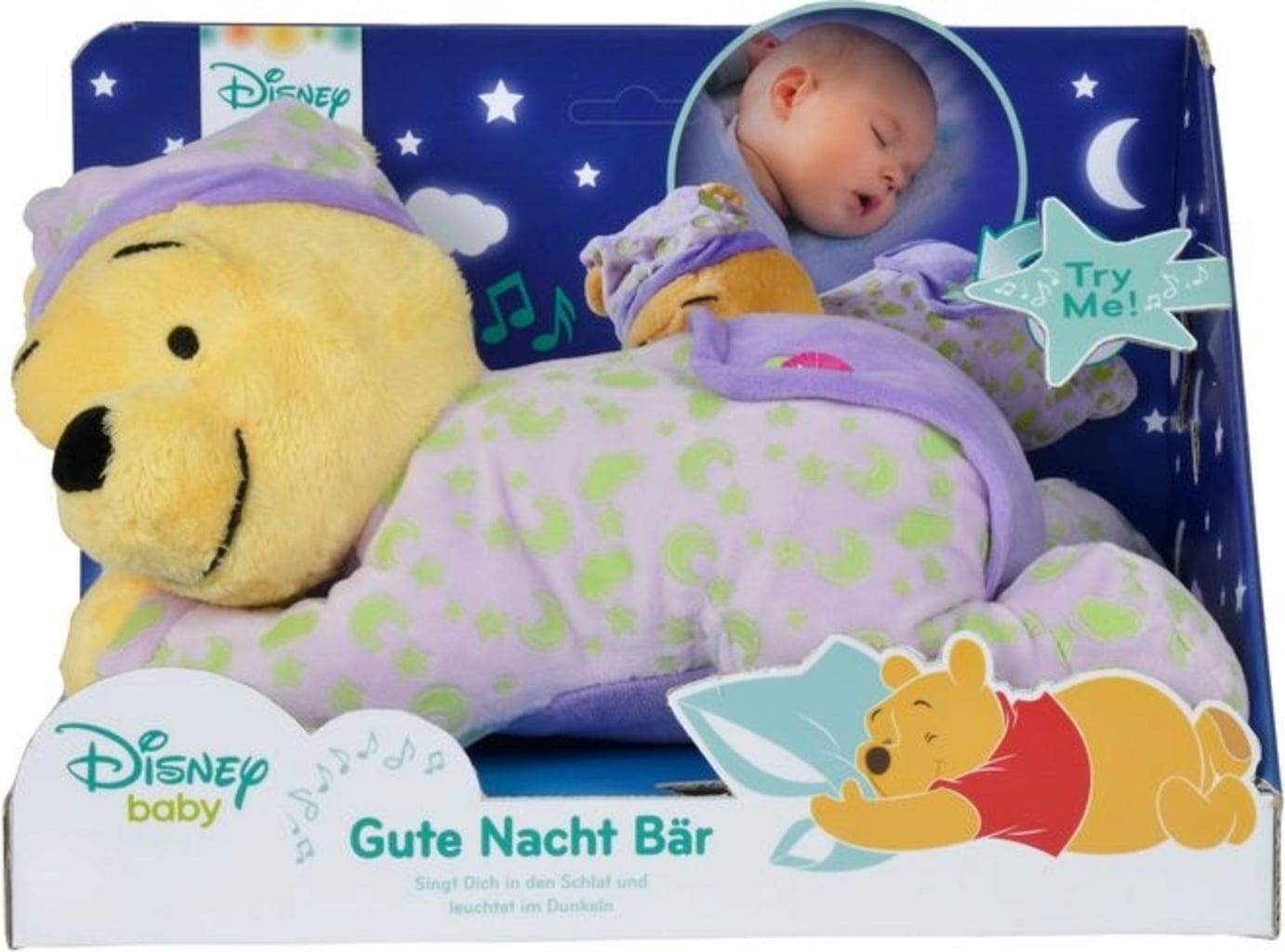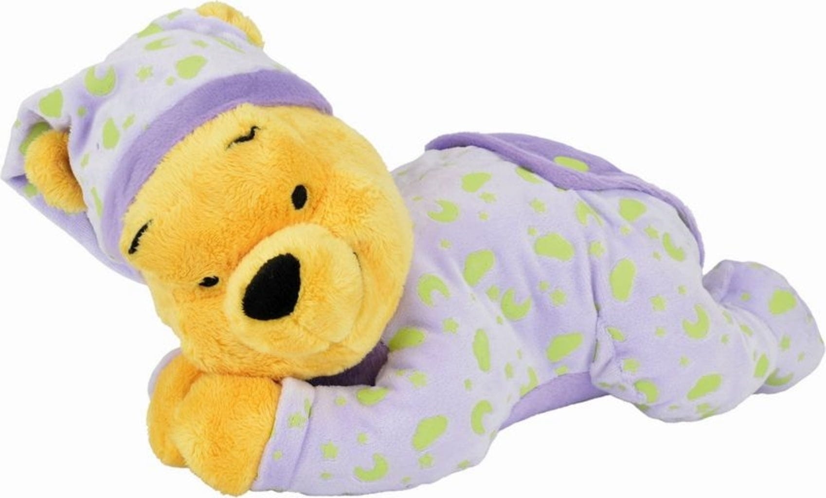 Winnie de Poeh vergezelt je naar het rijk der dromen. De knuffelbare slaaphulp geeft een aangenaam licht dankzij de lichtgevende details. Het kan ook een rustgevend melodietje afspelen.