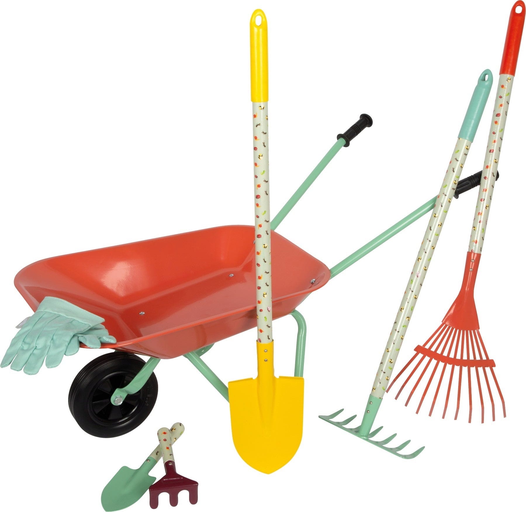 Deze kleurrijke tuinset nodigt kleine ontdekkingsreizigers uit om de natuur spelenderwijs te verkennen. Of het nu in de tuin, de zandbak of op het strand is – met de kruiwagen, het gereedschap en de handschoenen kunnen kinderen hun eigen avonturen beleven en daarbij hun motoriek en creativiteit trainen.