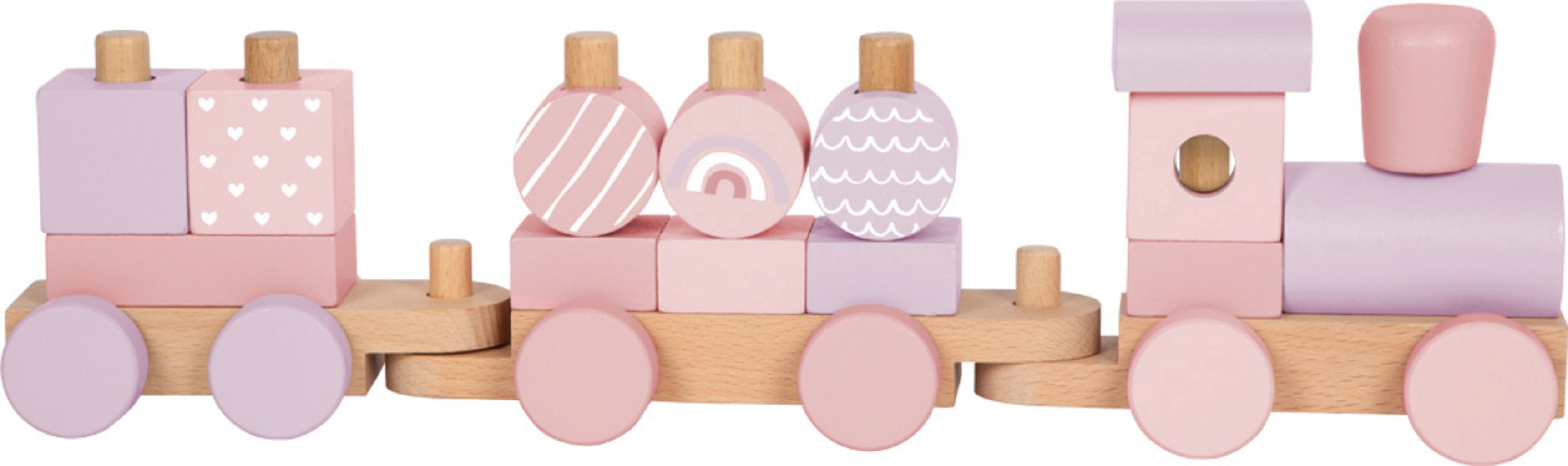 De roze houten trein combineert creatief bouwen en stapelen met fantasierijk treinspel. Kinderen kunnen de 14 houten blokken naar eigen inzicht combineren, de locomotief en wagons verplaatsen of de bouwstenen apart gebruiken. Stevig, liefdevol ontworpen en een echte blikvanger in de kinderkamer - voor spelenderwijs leren, ontwikkeling van de motoriek en langdurig speelplezier.