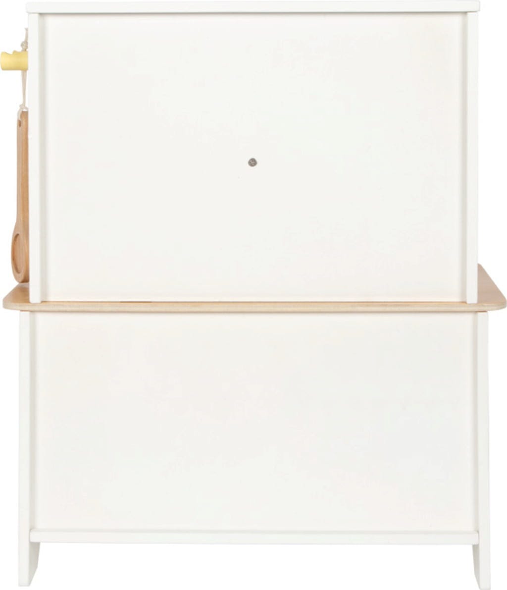 De compacte kinderkeuken in een trendy terrazzo-look biedt veel kookplezier in een kleine ruimte. Met een kookplaat, oven en gootsteen kunnen kleine koks hun eigen creaties tevoorschijn toveren, terwijl draaiende knoppen, magnetische deuren en de uitneembare gootsteen het spel bijzonder realistisch maken. Ideaal voor creatief rollenspel, poppenkeuken en gezamenlijke kookavonturen in de kinderkamer!